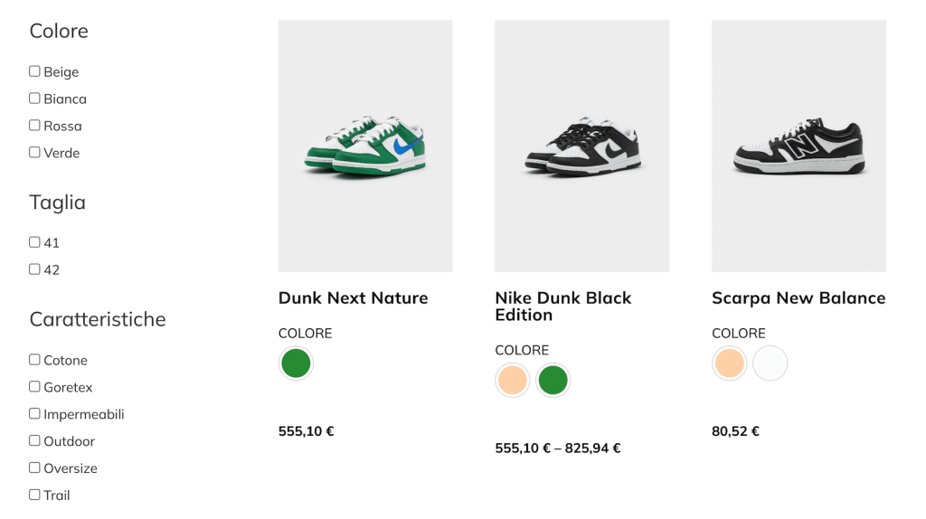 ARCHIVIO PRODOTTI CON FILTRI PERSONALIZZATI