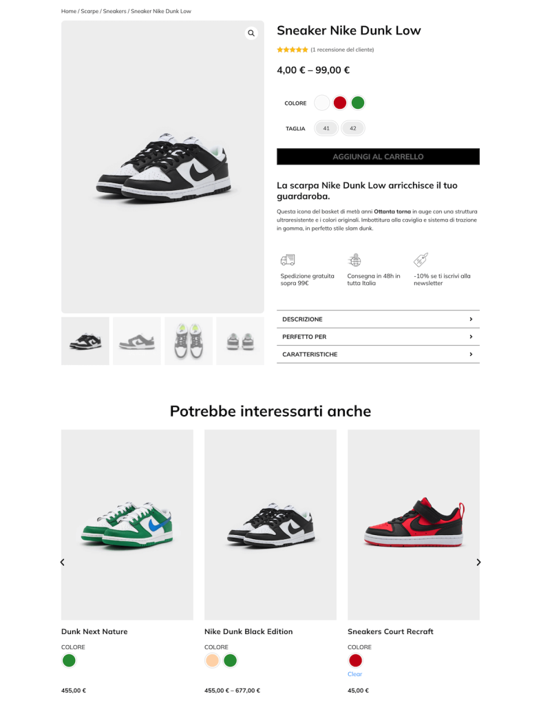 Accedi a template pronti all’uso e risparmia ore di lavoro. Ho preparato e costruito per te dei template dal design altamente personalizzato che puoi usare subito per la tua homepage, categorie di prodotto e pagina prodotto.