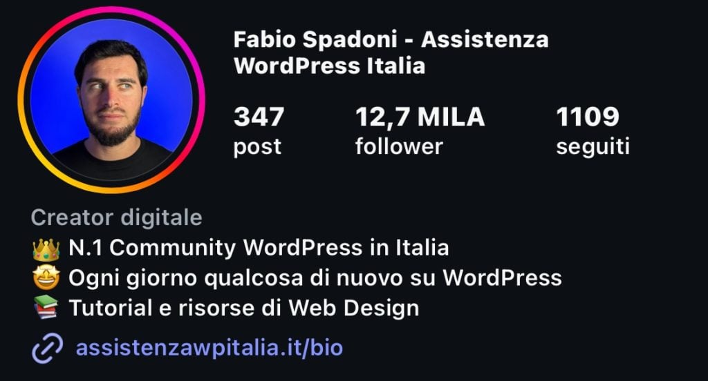 Ho anche fondato la community WordPress più grande d’Italia su Instagram.