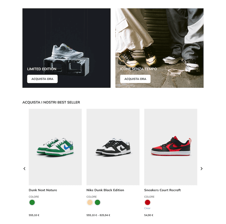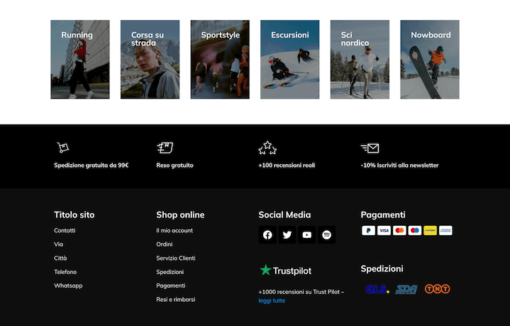 Ho preparato e costruito per te dei template dal design personalizzato che puoi usare subito per le sezioni del tuo Shop.