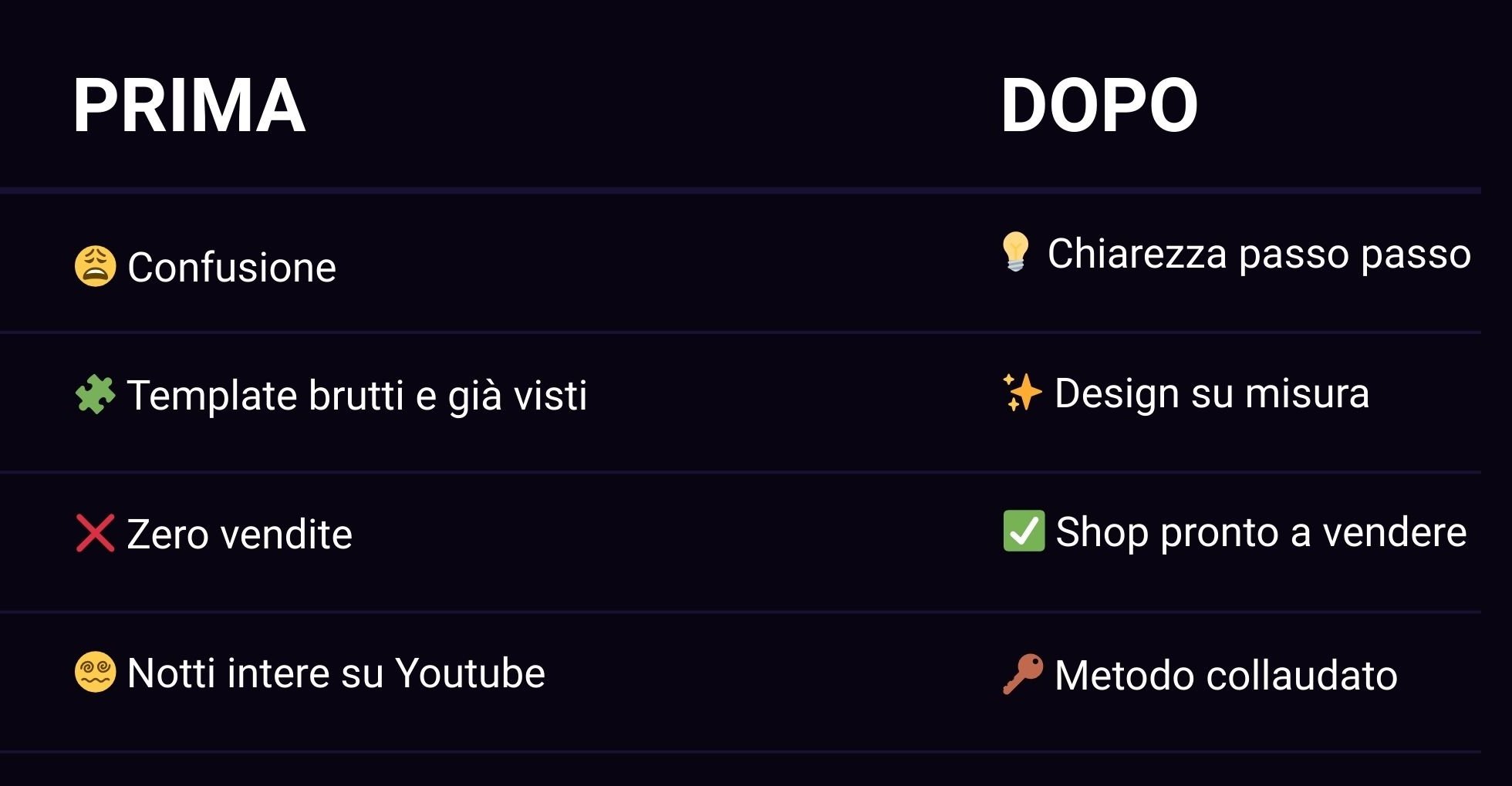 "Ti insegno lo stesso metodo che uso ogni giorno per creare E-Commerce per clienti reali, ottimizzati per vendere, belli da vedere e semplici da gestire."