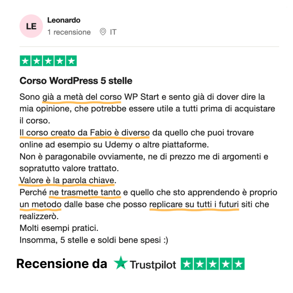 Ottimo il corso WP-Start, chiaro e sempre aggiornato 5 stelle meritate!